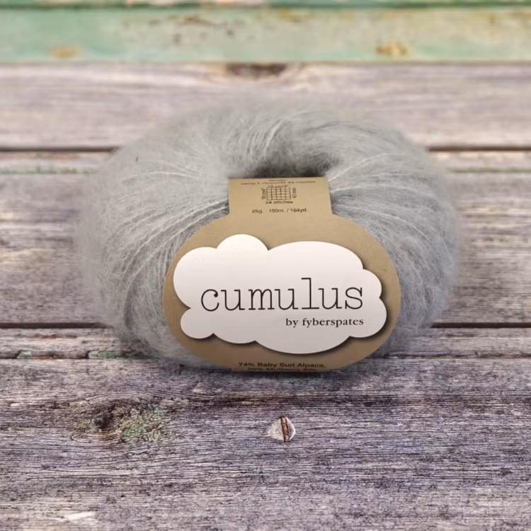 A heavy lace/3 ply weight yarn. This super soft yarn has a glistening silk core with a gentle halo of supersoft alpaca like soft pillowy clouds hence the name Cumulus.